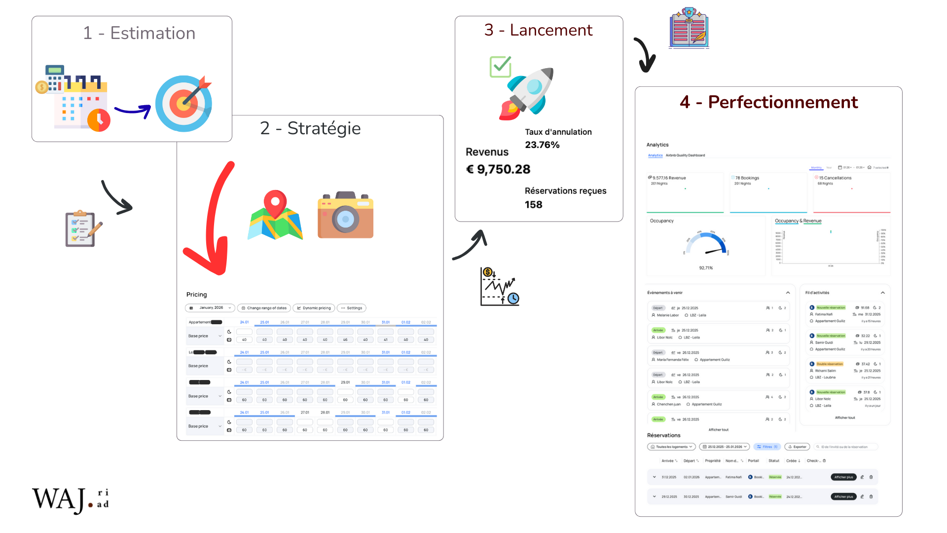 Après 4 ans en tant que consultant marketing, j'ai créé la méthode WAJ : une méthode qui applique les stratégies du marketing à la location courte durée.